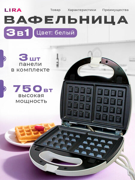 Мультипекарь Lira LR 1302 3 в 1 – это универсальный кухонный прибор, который объединяет в себе функции мини-гриля, вафельницы и сэндвичницы. С его помощью вы легко приготовите ароматные горячие бутерброды, хрустящие вафли и сочные стейки или овощи на гриле. В комплекте идут сменные насадки, что позволяет использовать устройство как гриль или вафельницу в зависимости от потребностей. Бутербродница легко справляется с приготовлением горячих бутербродов и сэндвичей на завтрак или перекус. С мощностью 750 Вт и напряжением сети 220 В, этот электрический мини-гриль быстро и эффективно приготовит ваши любимые блюда. Благодаря антипригарному покрытию, вы можете быть уверены, что продукты не прилипнут к поверхности и будет легко очистить устройство после использования. Благодаря компактным размерам электрическая техника не занимает много места на кухне, а простое управление обеспечивает удобство использования даже при ежедневной эксплуатации. Индикатор готовности к работе позволяет вам знать, когда устройство нагрето и готово к использованию. Корпус выполнен из прочных материалов, устойчивых к нагреву и механическим воздействиям. Надежная фиксация насадок гарантирует безопасность во время работы. С весом всего 2 кг, он также является портативным и удобным для переноски. Если вы ищете универсальное и удобное устройство для готовки различных блюд на вашей кухне, то мини-гриль 3 в 1 "Lira" LR 1302white идеально подходит для вас. Попробуйте его сегодня и наслаждайтесь вкусом разнообразных блюд!
