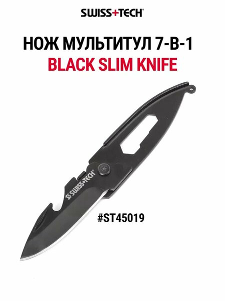 Мультитул нож Black Slim Knife 7 в 1 ST45019 от SWISS+TECH - это многофункциональный инструмент, который станет незаменимым помощником в любых условиях. Компактный размер и удобная рукоятка из нержавеющей стали делают этот мультитул легким и удобным в использовании. Black Slim Knife 7 в 1 ST45019 оснащен четырьмя инструментами: открывашкой для пробок, плоским гаечным ключом на 7, 8 и 10 мм. Это позволяет использовать его для различных задач, таких как открытие бутылок, закручивание и откручивание гаек и болтов. Мультитул нож Black Slim Knife 7 в 1 ST45019 имеет складную конструкцию, что обеспечивает его компактность и удобство хранения. Заточка инструмента прямая, что гарантирует его остроту и эффективность при использовании. Этот мультитул нож подходит для различных видов туризма и активного отдыха на природе. Он станет незаменимым помощником для любителей активного образа жизни и профессионалов своего дела.