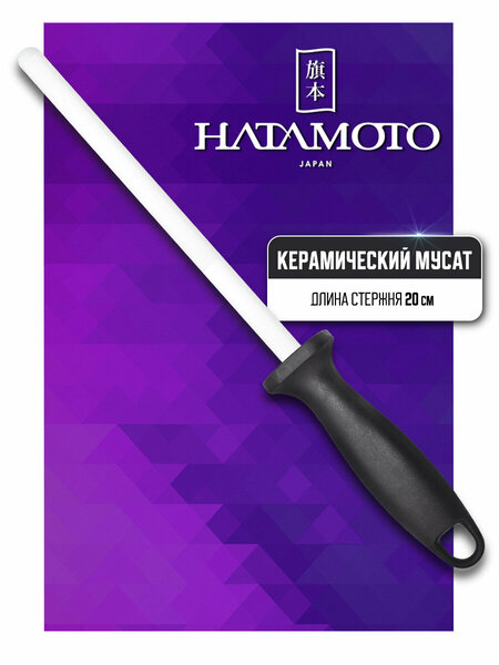 Мусат для кухонных ножей Hatamoto должен быть всегда под рукой, если вы хотите, чтобы инструменты имели идеальную заточку. Изделие сделано из циркониевой керамики. Аксессуар пользуется большим уважением и спросом среди профессиональных поваров. Удобная рукоятка с упором обеспечивает оптимальное приложение силы и упрощает работу. Модель выполнена из прочного материала и прослужит длительное время. Заточка происходит по принципу «нож об нож», только вместо другого ножа используется мусат. Лезвие после такой заточки становится идеально острым. Для удобства эксплуатации инструмент оснащён удобной пластиковой ручкой. Хотите за секунды натачивать кухонные ножи из стали – тогда стоит купить мусат Hatamoto.