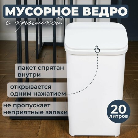 Мусорное ведро с крышкой - 20л - белое Мусорное ведро с крышкой объемом 20 литров выполнено в классическом белом цвете, который легко впишется в любой интерьер. Прямоугольная форма и компактные размеры (высота - 50 см, длина - 30 см, ширина - 25 см) позволяют разместить ведро даже в небольших помещениях. Крышка открывается простым нажатием, что обеспечивает быстрый и удобный доступ к содержимому ведра. Материал изготовления - пластик, который обеспечивает легкость и прочность изделия. В комплекте с мусорным ведром идет механизм открывания крышки, что делает использование ведра еще более удобным и практичным. Серия ClearHome от HouseMart предлагает широкий ассортимент товаров для дома, включая мусорные ведра и баки. Выбирая мусорное ведро с крышкой - 20л - белое, вы получаете стильный, функциональный и практичный аксессуар для вашего дома.