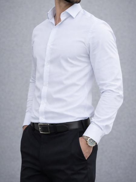 Белая классическая рубашка в минималистичном стиле. Идеально подходит для офиса, деловых встреч и мероприятий. Элегантный приталенный крой. Мужская белая классическая рубашка — базовый элемент гардероба современного мужчины. Чистый белый цвет подчёркивает аккуратность и уверенность. Изготовлена из качественной и приятной к телу ткани, обеспечивающей комфорт в течение всего дня. Приталенный (slim fit) крой красиво подчёркивает силуэт. Классический воротник гармонично сочетается с костюмом или брюками. Подходит для офиса, деловых встреч, мероприятий и повседневного ношения. Манжеты аккуратно обработаны, пуговицы прочные и долговечные. Преимущества Универсальный белый цвет Приталенный современный крой Дышащий материал Качественный пошив Подходит для офиса и официальных мероприятий Характеристики Тип товара: Мужская рубашка Цвет: Белый Воротник: Классический Рукав: Длинный Крой: Slim fit Стиль: Классический / Деловой Сезон: Весна / Осень / Зима Тип застёжки: На пуговицах Уход: Стирка при 30°C