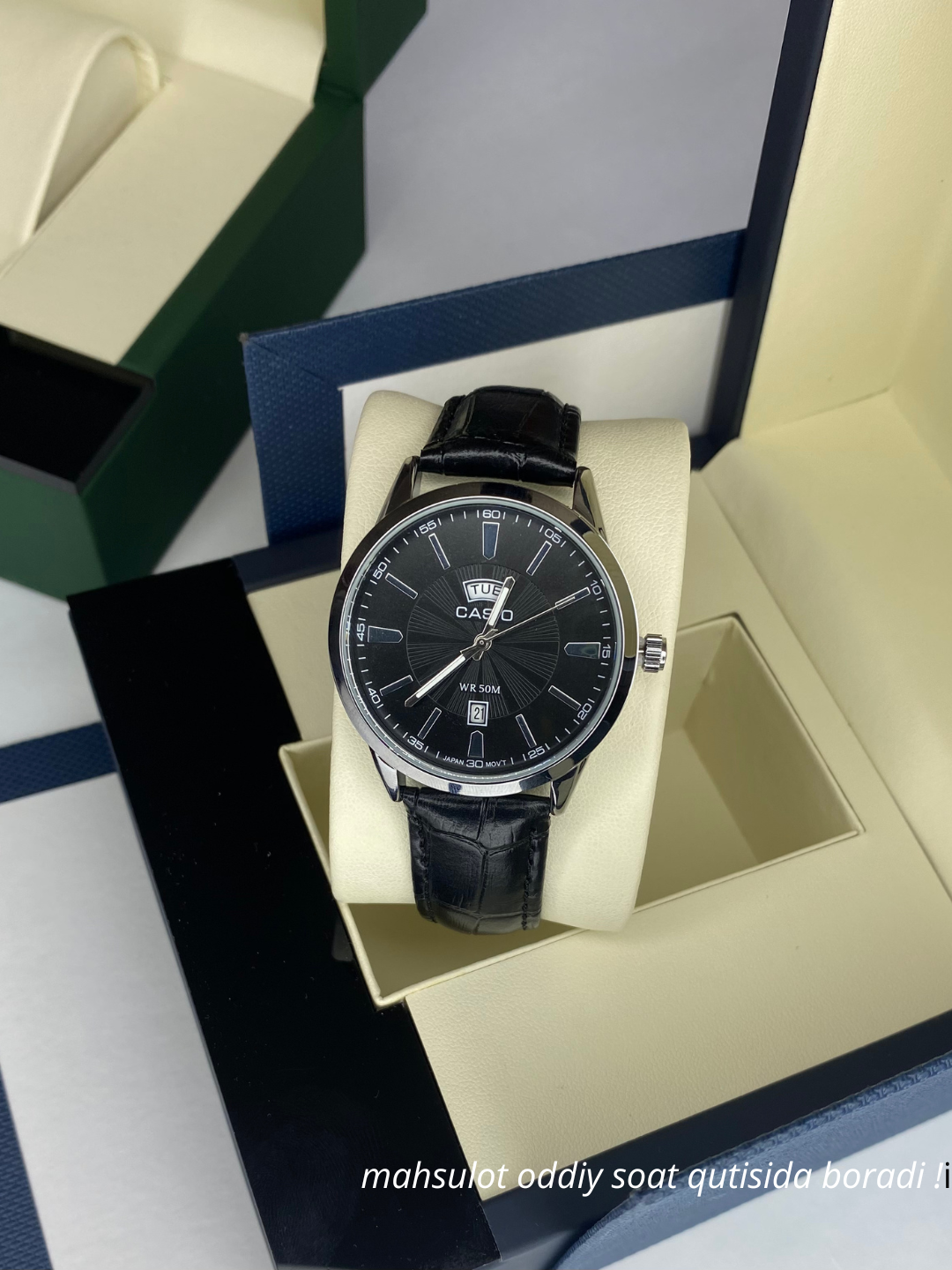 Мужские кварцевые часы – точность, стиль и надежность в одном аксессуаре Каждый мужчина знает: часы – это не просто устройство для измерения времени, а важная деталь имиджа и стиля. Эти мужские кварцевые часы сочетают в себе элегантный дизайн, точность и удобство в использовании. Они подойдут как для повседневной носки, так и для деловых встреч, вечерних прогулок или особых мероприятий. Благодаря классическому внешнему виду и качественным материалам модель прекрасно сочетается с любой одеждой — от делового костюма до повседневного casual-образа. Часы станут вашим надежным спутником на долгие годы. --- Современный дизайн и классическая элегантность Дизайн часов объединяет строгость, минимализм и изысканность. Циферблат выполнен в лаконичном стиле — четкие стрелки и метки на спокойном фоне обеспечивают отличную читаемость. Корпус изготовлен из нержавеющей стали, что делает часы прочными и устойчивыми к износу. Минеральное стекло защищает поверхность от царапин и придает изделию благородный блеск. Ремешок из качественной кожи мягко прилегает к запястью, не вызывает раздражения и сохраняет форму со временем. Он подчеркивает мужской характер модели и делает часы универсальными для любого случая. --- Надежный кварцевый механизм Основное преимущество этих часов – точный кварцевый механизм. Он работает от батарейки и обеспечивает стабильную работу без необходимости подзавода. Преимущества кварцевых часов: высокая точность хода, тихая и плавная работа стрелок, долговечная батарейка, отсутствие необходимости регулярного обслуживания. Благодаря этому модель удобна в использовании и идеально подходит для тех, кто ценит практичность и надежность. --- Функциональные возможности Часы оснащены всеми необходимыми функциями для повседневной жизни: Календарь (индикатор даты) – всегда поможет быть в курсе текущего числа, Влагозащита (Water Resistant) – защищает от брызг воды и дождя, Легкий корпус – не ощущается на руке, Бесшумный ход – не отвлекает при работе или отдыхе. Контрастный циферблат делает показания легко читаемыми даже при слабом освещении. --- Идеальное дополнение к любому образу Эта модель универсальна – она отлично подходит: для деловых встреч и офиса, для прогулок и повседневного ношения, для подарка близкому человеку. Часы подчеркнут ваш вкус, уверенность и стремление к порядку. Упакованы они в аккуратную коробку, что делает их прекрасным подарочным вариантом для мужчины любого возраста. --- Технические характеристики Тип механизма: кварцевый (на батарейке) Материал корпуса: нержавеющая сталь Стекло: минеральное (устойчивое к царапинам) Ремешок: кожаный (мягкий, прочный) Функции: календарь (дата) Водозащита: Water Resistant Пол: мужской Стиль: классический / бизнес / casual --- Преимущества ✅ Высокая точность кварцевого механизма ✅ Стильный и лаконичный дизайн ✅ Прочное минеральное стекло ✅ Удобный кожаный ремешок ✅ Долговечная батарейка ✅ Универсальный стиль ✅ Отличный вариант для подарка --- Почему стоит выбрать именно эти часы Эта модель создана для мужчин, которые ценят стиль, аккуратность и практичность. Часы прекрасно дополняют любой образ, оставаясь при этом функциональными и удобными. С ними вы всегда будете знать точное время и выглядеть безупречно. Легкие, надежные и универсальные — эти часы станут вашим верным спутн