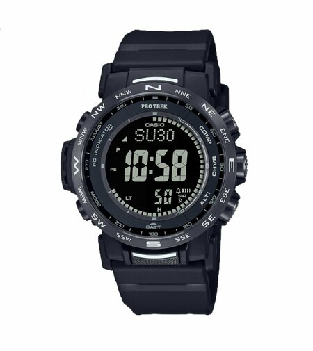 Перед вами эволюционный релиз Casio 2023 года в линейке Pro Trek — стильная и функциональная цифровая модель из свежей серии PRW-35 в черном полимерном корпусе на мягком и прочном ремешке из биополимера. Часы созданы для путешествий, хайкинга и активного времяпровождения на природе. Модель является развитием цифровой серии PRW-30 и обладает контрастным эргономичным дисплеем, получила внешний рестайлинг, стала еще немного компактнее и легче своего предшественника на 20 грамм. На борту модели вы найдете Triple Sensor (тройной датчик): термометр, барометр, высотомер, компас, а также данные о заходе и восходе Солнца, яркую автоматическую подсветку, а прочное минеральное стекло, окруженное стальным безелем, защищает циферблат от механических повреждений. Добавьте сюда солнечную батарею, радио-синхронизацию времени и водозащиту до 100 метров, чтобы быть уверенными, перед вами один из самых громких и востребованных релизов Casio в 2023 году!
