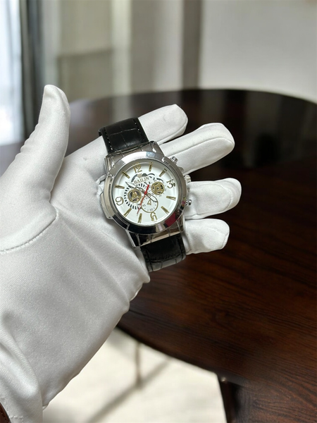 Мужские наручные часы с хронографом стиле Эти стильные мужские часы созданы для тех, кто ценит точность, надёжность и выразительный дизайн. Модель гармонично сочетает в себе классический и спортивный стиль, благодаря чему идеально подходит как для повседневного ношения, так и для деловых или торжественных мероприятий. Корпус часов выполнен из прочного металлического сплава с матовым покрытием, что придаёт изделию солидный и дорогой внешний вид. Чёрный скелетонизированный циферблат позволяет увидеть элементы внутреннего механизма и делает дизайн особенно эффектным. Крупные часовые метки обеспечивают отличную читаемость даже при слабом освещении. Функция хронографа позволяет точно измерять время в секундах и минутах. Центральная секундная стрелка ярко-красного цвета подчёркивает динамичный характер часов. Дополнительные субциферблаты повышают функциональность и удобство использования. Ремешок из качественной натуральной кожи мягко прилегает к запястью и обеспечивает комфорт при длительном ношении. Прочная прошивка гарантирует долговечность и надёжность. Часы отлично сочетаются как с повседневной одеждой, так и с классическим костюмом. Преимущества: Стильный дизайн Функция хронографа Прочный металлический корпус Скелетонизированный циферблат Удобный кожаный ремешок Отличный вариант подарка для мужчины Эти часы подчеркнут ваш статус, вкус и индивидуальность, став незаменимым аксессуаром на каждый день.