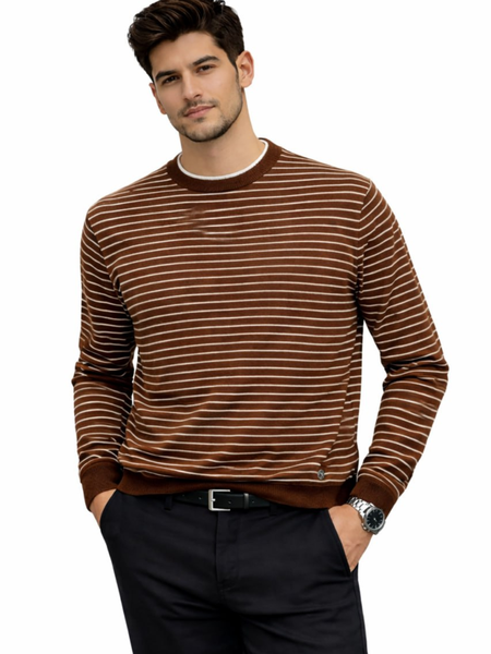 Классический полосатый дизайн делает модель универсальной — свитер отлично сочетается с джинсами, брюками и повседневной одеждой. Манжеты и нижний край на резинке обеспечивают аккуратную посадку.