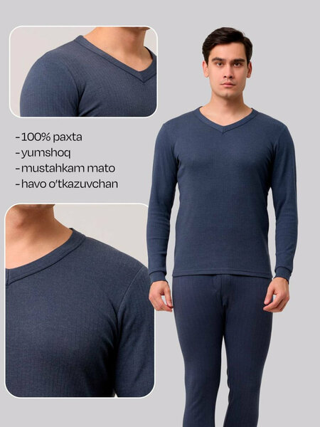 Мужское термобелье – идеальный выбор для тепла и комфорта в холодное время года! Это мужское термобелье разработано специально для сохранения тепла в холодную погоду. Оно удерживает тепло тела, оставаясь при этом легким и дышащим, что обеспечивает максимальный комфорт даже при длительном ношении. Идеально подходит для активного отдыха, занятий спортом или повседневного использования. Отлично подходит для повседневного ношения: выполнен из натурального хлопка, который позволяет коже дышать. Отводит влагу и заботится о сохранении тепла. Качественный материал: Изготовлено из высококачественных дышащих материалов, которые уменьшают потоотделение и обеспечивают длительное ощущение комфорта. Технология сохранения тепла: Одежда помогает поддерживать постоянную температуру тела в холодное время года, что делает её отличным выбором для улицы и активного образа жизни. Свобода движений: Эластичная и удобная, не ограничивает движения, что идеально для занятий спортом или активной работы. Универсальность использования: Идеально подходит для работы, спорта или просто для поддержания тепла в течение холодных дней. С этим термобельем вы будете чувствовать себя тепло и комфортно в любую холодную погоду! Термобелье из 100% хлопка неприхотливо в уходе, легко стирается, быстро сохнет, хорошо сохраняет форму и цвет даже после многократных стирок.