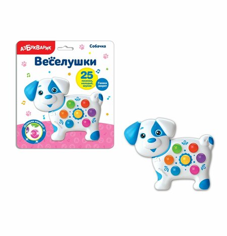 Музыкальная игрушка Собачка из серии "Веселушки" подарит вашему малышу много веселья, порадует разноцветными мигающими огоньками и будет способствовать его гармоничному развитию. Нажимая на кнопочки, малыш сможет послушать добрые песенки и мелодии ("У бурёнки есть телёнок.", "Я собачка", "На ферме весело живётся", "Я - маленький щенок", "Человек собаке друг", "Щенок" / "Собачий вальс", "Песенка о лете", "Вдоль по Питерской", весёлые мелодии), звуки и даже голоса зверят! В игрушке используются элементы русского народного творчества - художественный образ Собачки, потешки, мелодии. Всё это разносторонне воздействует на малыша, учит образно мыслить, закладывает основы эстетической культуры. Играя с весёлой Собачкой, детки будут развивать мелкую моторику и координацию движений, музыкальный слух и чувство ритма, память и фантазию. Игрушка изготовлена из качественного пластика, сертифицирована. Работает от 3х батареек типа 3ААА (в комплекте) Вид упаковки: Картонка с блистером Размер упаковки: 19х5х21 см Размер товара: 15,5х4,5х12,5 см