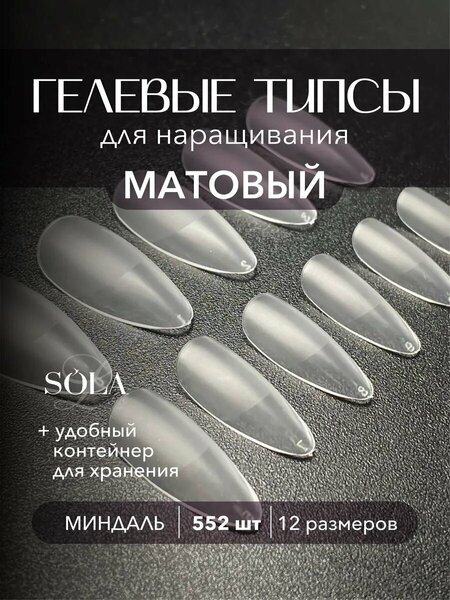 Для любителей экстремальной длины! -12 размеров - тонкие и гибкие, но прочные - глянцевая, тончайшая и эластичная поверхность в области натурального ногтя - лёгкие в опиле - крепятся на базу - снимаются фрезой Гелевые типсы для наращивания ногтей Сола. Легкое и быстрое экспресс наращивание! Нужна только база и типсы Sola. 1. Делаем маникюр и подготавливаем ногтевую пластину. 2. Наносим базу и сушим. 3. Подбираем типсу по размеру. 4. Наносим кисточкой базу на типсу и немного на ноготь. 5. Прикладываем типсу с отступом от кутикулы и сушим уф лампой. 6. Подпиливаем ступеньку около кутикулы. Наращивание готово! Экономь часы работы! Советуем использовать бафик и праймер для ногтевой пластины нп перед нанесением каучук базы. Далее наносим самовыравнивающийся гель лак и топ. И не нужно возиться с полигелем, гелем, акригель, акрилом, стекловолокном, подстраивать верхние и нижние формы! Также можно использовать зажимы прищепки. Очень удобный и компактный дорожный маникюрный контейнер бокс пластиковый органайзер кейс для хранения типс и кистей. Полный набор 552 шт типс без клея.