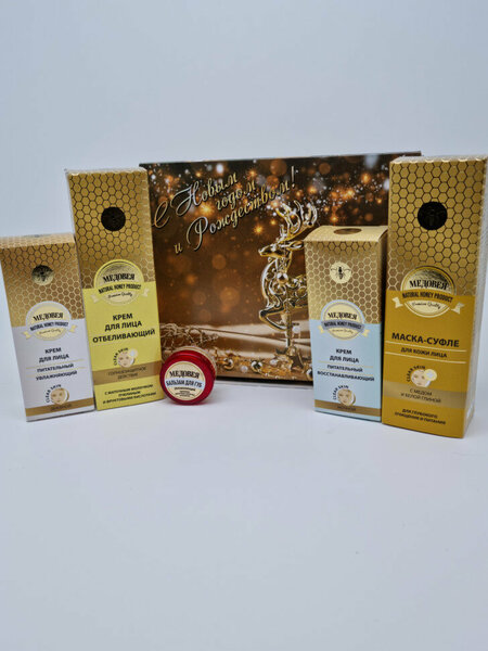 Набор натуральной природной косметики "Медовея" в подарочной коробке для поздравления с Новым годом и Рождеством.