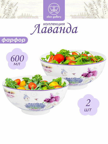 Набор 2 салатников 600 мл 15х15х7 см Elan Gallery Лаванда, фарфор