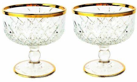 Набор 2шт. креманок из стекла объемом 275 мл станет отличным дополнением к вашему столу. В комплекте вы получаете две креманки диаметром 9,5 см и высотой 10,5 см. Изготовлены из стекла, что гарантирует их прочность и долговечность. Благодаря использованию золотосодержащей краски, обводка на креманках выглядит особенно изысканно и элегантно. Важно помнить, что креманки не предназначены для использования в микроволновой печи и посудомоечной машине. Также не рекомендуется мыть их с применением абразивных чистящих средств, так как это может повредить поверхность. Выбирая набор креманок, вы получаете не только стильный аксессуар для сервировки стола, но и качественный продукт, который будет радовать вас своим внешним видом и функциональностью на протяжении долгого времени.