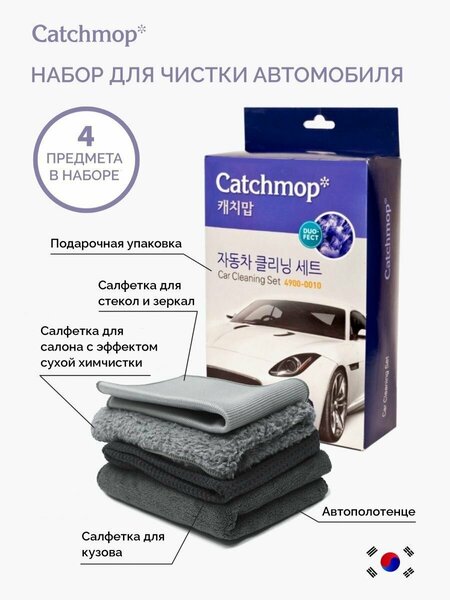 Набор для уборки из четырех предметов многофункциональный заставит ваш автомобиль засиять в считанные секунды ! Сухая уборка без химии возможна не только дома Порадуйте себя и своих близких полезными и многофункциональными тряпочками из микрофибры ! Набор в подарок водителю и автолюбителю будет отличной идеей Автополотенце из микрофибры для сушки и протирания кузова придаст любой поверхности зеркальный блеск и легко удалит любую даже самую застаренную грязь Двухстороннее автомобильное полотенце создано из инновационного микроволокна , которое обладает антистатическим эффектом а значит новый сор и пыль будут оседать в разы меньше и ваша машина будет выделять чистотой ! Салфетка для салона авто обладает эффектом сухой химчистки ! Вам не нужно применять химические моющие средства , для того чтобы добиться максимального эффекта ! Салфетка для уборки безопасна для аллергиков и экологична и может быть использована в доме с детьми и особо чувствительными и пожилыми людьми Справится с пятнами на чехлах и сиденьях уберет крошки и сор из самых труднодоступных мест Губка безопасна для любых искусственных и натуральных материалов и тканей Многоразовая губка Способна выдержать до 500 стирок без потери свойств Легко собирает ворс и шерсть с тканевых поверхностей как щетка для ковра но в разы эффективнее Оттирает жир , сальные пятна , отпечатки от рук и любой налет Позволит избежать раннего старения автомобиля Подойдет тем , кто часто ездит с животными или детьми , которые любят хулиганить Для влажной или сухой уборки Тряпочка и салфетка для стекол и зеркал порадует тех , кто устал видеть постоянные капли и разводы на хромированных деталях машины Благодаря мягкому материалу и скругленному краю она не царапает поверхности и легко справляется с любыми подтеками Универсальная салфетка подойдет для полировки ручек , фар и зеркал в вашей машине С ее помощью вы легко отчистите панель приборов Комплект подойдет не только для машины но и для дома он универсален и прост в применении с ним могут справиться даже дети Аксессуары в автомобиль моющие чистящие средства тряпка для пола полотенце махровое из микрофибры экотовар подарок мужчине папе брату любимому парню на 23 февраля на день водителя в автомобиль аксессуары для уборки салфетки губки для окон для стекол зеркал подоконников без вредной химии Корейский стандарт чистоты для полов для потолка для сидений для маленьких детей Тряпка с отжимом Хозяйственные товары Тряпка полотенце из микрофибры махровое мягкое впитывающее серое сиреневое лаванда набор подарок На праздник В машину мужской подарок для очистки от пыли для животных от шерсти щетка для пола от жирных пятен автонабор Бренд Catchmop - запатентованная технология , позволяющая облегчить жизнь тем , кто не готов тратить на скучные бытовые дела свое время А уж уборка автомобиля и вовсе должна быть максимально быстрой , ведь часто приходится убираться прямо перед самым отъездом Почему наша продукция позволит сократить время уборки ? Все дело в микроволокне , которое мы используем в своих аксессуарах для уборки Оно в несколько раз тоньше человеческого волоса , благодаря чему любая даже самая маленькая пылинка не останется не замеченной ! Вам не нужно применять мобщие средства и ждать пока салон машины высохнет , ведь с нашими 