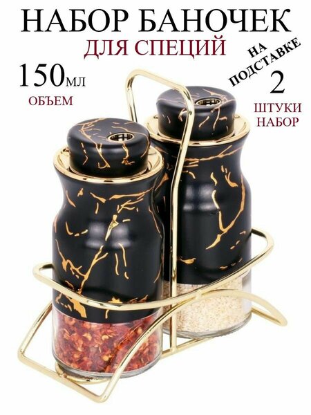 Солонка и перечница важные аксессуары для кухни и сервировки стола. Наш набор включает в себя две ёмкости для специй на подставке. Стильный набор для специй – лучшее украшение праздничного стола. Стеклянные емкости объемом 150 мл. оснащены удобной герметичной крышкой с тремя режимами дозировки и красивым дизайном. Дно прозрачное, что позволяет видеть их содержимое. Благодаря подставке их удобно хранить и переставлять, не занимает много места выглядят стильно и практично. Такой контейнер не впитывает запахи и легко моется. Баночки для соли и для перца обязательно присутствуют в каждом доме. Емкость для сыпучих продуктов хранят в шкафу, но наш набор рекомендуем ставить на стол, ведь смотрится он очень красиво и придаст стиля вашей трапезе. Вас порадует высокое качество изделия. Посуда для сыпучих продуктов таких как: соль перец пряные приправы или сушеная зелень укроп петрушка рекомендуется хранить в стеклянных контейнерах. Благодаря возможности выбора одного из трёх режимов посыпки, ёмкости могут быть использованы как для более крупных гранул специй, так и для частиц совсем небольшого размера. Прочная герметичная конструкция исключает просыпание содержимого, а специи всегда будут свежими и ароматными, при этом материал не впитывает запахи. Все банки с широким горлышком, для удобства заполнения. Устойчивая и надёжная подставка обеспечит удобство использования как в домашних условиях, так и на природе, при готовке барбекю. Металлическая подставка выполняет множество разных функций: она позволит Вам переставить баночки с одного на другое место, не прикасаясь к стеклу баночек руками, защитит стекло баночек в случае соприкосновения с другими предметами при перевозке набора, а так же просто украсит Ваш стол в качестве аксессуара в современном стиле. Набор стеклянных баночек для соли и перца на стол обязательно порадует маму, бабушку или тетю. Они станут желанным подарком на новоселье или юбилей. Демонстрируйте свой вкус в деталях!