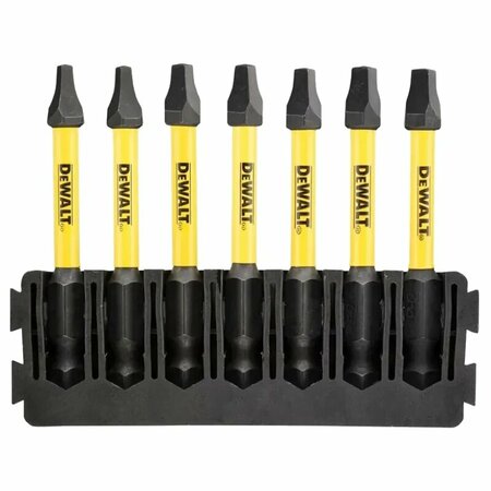 Набор бит DeWALT FLEXTORQ SQ 57мм 7шт. DT70824-QZ - набор из 7 ударных бит для квадратных винтов со стандартным шестигранным креплением на 1/4 дюйма. Имеют специальную зону гибкого скручивания EXTREME FLEXTORQ™, которая уменьшает нагрузку на верхнюю часть наконечника и, таким образом, сводит к минимуму опасность поломки головки винта; улучшает передачу крутящего момента и увеличивает срок службы наконечника; наконечник устраняет вибрацию и закругление головки винта. Изготовлены из высококачественной стали, что дает им устойчивость и длительный срок службы. Все биты имеют длину 57 мм и закреплены в специальном держателе, который можно поместить в коробки системы ToughCase+.