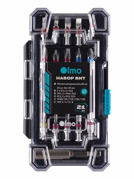 Набор бит OLMO с магнитным удлинителем CRV 21 шт - это высококачественный инструмент, предназначенный для работы с крепежными элементами. Он обеспечивает комфорт при закручивании и точность, благодаря чему вы сможете выполнять работу быстро и без лишних усилий. Все изделия в составе набора выполнены из хром-ванадиевой стали, что гарантирует их прочность и долговечность. Набор включает в себя 21 биту с различными типами наконечников, включая шестигранники, звездочки, крестовые и плоские. Это позволяет использовать его для работы с различными видами крепежных элементов. Магнитное удлиннение CRV облегчает работу с крепежными элементами, находящимися в труднодоступных местах. В целом, набор бит OLMO с магнитным удлинителем CRV 21 шт станет незаменимым помощником как для профессионалов, так и для любителей.