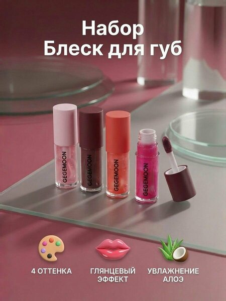 Подарите своим губам насыщенный цвет и уход с этим набором блесков! Представляем уникальный набор из 4 разных фруктовых тинт-блесков для губ, который станет идеальным дополнением к вашей косметичке и отличным подарком для ваших близких. Эти блески не только обеспечивают стойкий и насыщенный цвет, но и ухаживают за вашими губками, делая их мягкими, ухоженными и увлажненными. Почему стоит выбрать наш набор фруктовых блесков? 1. Лёгкая текстура и комфортное нанесение Каждый блеск имеет лёгкую и нежную текстуру, которая легко наносится и не оставляет ощущения липкости или стянутости. Они будут чувствовать себя комфортно в течение всего дня. 2. Стойкость и длительное сияние Наши блески для губ обладают высокой стойкостью, сохраняя яркость и насыщенность цвета на протяжении 6-8 часов. Они обеспечивают равномерное покрытие и длительное сияние, что делает их идеальными как для повседневного использования, так и для профессионального макияжа. 3. Увлажняющая формула Формулы наших оттеночных блесков для губ обогащены натуральными маслами, экстрактами фруктов и гиалуроновой кислотой, которые интенсивно увлажняют и питают. Это способствует заживлению микротрещин, поддержанию оптимального уровня гидратации и созданию ухоженного вида. 4. Уникальные оттенки В набор входят 4 разных оттенков, которые позволяют экспериментировать с цветовой палитрой и подбирать идеальный тон для любого образа. Они подчеркнут Вашу индивидуальность. 5. Высокое качество ингредиентов Мы используем только высококачественные и безопасные ингредиенты, которые обеспечивают насыщенный цвет и комплексный уход. Наши стойкие блески не содержат вредных веществ и подходят для чувствительной кожи. Для кого этот подарочный набор блесков для губ? - Для повседневного использования Наносите этот фруктовый блеск для губ утром и наслаждайтесь его стойким эффектом в течение всего дня. Они будут выглядеть ухоженными и красивыми даже без дополнительного макияжа. - Для профессионального макияжа Наши увлажняющие и стойкие блески для губ идеально подходят для создания разнообразных макияжных решений. Они легко наносятся и обеспечивают равномерное покрытие, что делает их незаменимыми для визажистов и профессиональных косметологов. Подарите своим близким оттеночный блеск для губ 4 в 1 и порадуйте их красивым и полезным подарком. Этот набор станет отличным дополнением к любой косметичке и подарит радость и уверенность в себе, прекрасный подарок на 8 марта, день рождения или просто так. Подарите себе возможность каждый день наслаждаться яркими губами и безупречным макияжем!