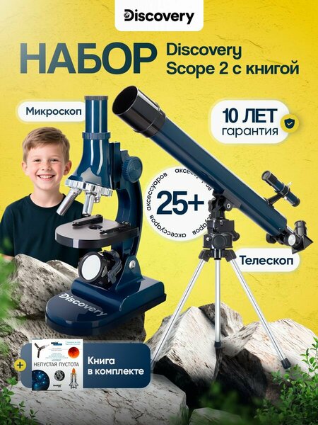 Набор Discovery Scope 2 с книгой: телескоп и микроскоп