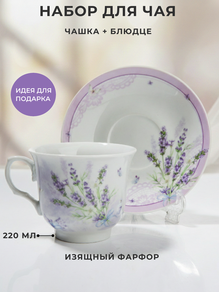 Набор для чаепития из фарфора "Лаванда" в стиле Прованс- чашка 220 мл + блюдце