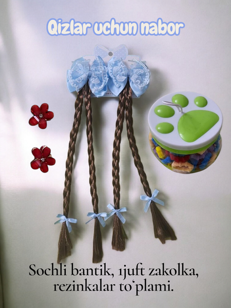 В набор входят 6 товаров -Набор поставляется в подарочной упаковке, подходящей для любой девочки, и может стать отличным подарком на любой праздник -Все товары поставляются с качественной металлической заколкой, набор резинок , бантов, качественными расческами и зеркальцем с металлическим -Если вы хотите расчесать волосы, вам пригодится обычная прямая расческа . Ее также можно носить в сумке, чтобы поправить прическу в любое время -Запоминающийся и восхитительный подарок для вашей самой близкой подруги сестры племянницы или любимого человека