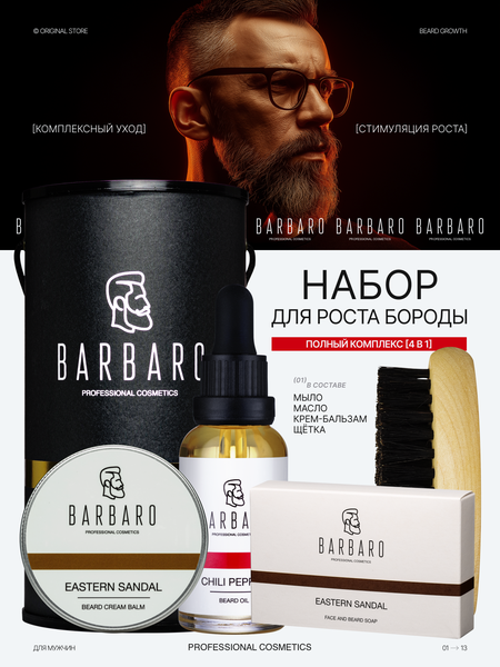 {"widgets":{"@card/UniversalPromoBadge":{"/content/page/fancyPage/defaultPage/universalPromoBadge":{"wrapperProps":{"margins":{"bottom":"3"}},"initialTime":1771150691677,"offerComposeId":"15775429507092029556"}}},"meta":{"/content/page/fancyPage/defaultPage/universalPromoBadge":{"name":"@card/UniversalPromoBadge"}},"collections":{"productServiceSnippets":{"15775429507092029556":{"productSnippet":{"snippetId":"document_id","type":"MODEL_CARD_LAYOUT","productPayload":{"snippetStyle":"NORMAL","title":{"value":"Мужской подарочный набор для роста бороды Barbaro, с маслом переца чили в подарочной тубе 4в1"},"badges":{},"price":{"actualPrice":{"amount":{"intPart":999364,"currency":"UZS"},"style":"RED","type":"OTHER_DISCOUNT"},"oldPrice":{"amount":{"intPart":2082008,"currency":"UZS"},"style":"STRIKETHROWED"}},"signals":{"customsFee":{"text":{"text":"Возможна пошлина"}}},"gallery":{"mediaItems":[{"picture":{"baseUrl":"https://avatars.mds.yandex.net/get-mpic/16477657/2a00000198fb177b3acf3dbef4aa73ec0e2a/","width":1500,"height":2000,"title":"Мужской подарочный набор для роста бороды Barbaro, с маслом переца чили в подарочной тубе 4в1"},"type":"IMAGE"},{"picture":{"baseUrl":"https://avatars.mds.yandex.net/get-mpic/16460090/2a00000198fb177b3a1f36ab064b976d11ae/","width":1500,"height":2000,"title":"Мужской подарочный набор для роста бороды Barbaro, с маслом переца чили в подарочной тубе 4в1"},"type":"IMAGE"},{"picture":{"baseUrl":"https://avatars.mds.yandex.net/get-mpic/16146719/2a00000198fb177b380f72a924b466018a92/","width":1500,"height":2000,"title":"Мужской подарочный набор для роста бороды Barbaro, с маслом переца чили в подарочной тубе 4в1"},"type":"IMAGE"},{"picture":{"baseUrl":"https://avatars.mds.yandex.net/get-mpic/14411065/2a00000198fb177b3a994c7742c763d4453c/","width":1500,"height":2000,"title":"Мужской подарочный набор для роста бороды Barbaro, с маслом переца чили в подарочной тубе 4в1"},"type":"IMAGE"},{"picture":{"baseUrl":"https://avatars.mds.yandex.net/get-mpic/14579750/2a00000198fb177b3aa37450cdf5eb07f7b4/","width":1500,"height":2000,"title":"Мужской подарочный набор для роста бороды Barbaro, с маслом переца чили в подарочной тубе 4в1"},"type":"IMAGE"},{"picture":{"baseUrl":"https://avatars.mds.yandex.net/get-mpic/14464463/2a00000198fb177b35220f068e7f045c3235/","width":1500,"height":2000,"title":"Мужской подарочный набор для роста бороды Barbaro, с маслом переца чили в подарочной тубе 4в1"},"type":"IMAGE"},{"picture":{"baseUrl":"https://avatars.mds.yandex.net/get-mpic/16286835/2a00000198fb177b39391e89e987caedfaea/","width":1500,"height":2000,"title":"Мужской подарочный набор для роста бороды Barbaro, с маслом переца чили в подарочной тубе 4в1"},"type":"IMAGE"},{"picture":{"baseUrl":"https://avatars.mds.yandex.net/get-mpic/16889017/2a00000198fb177b387c11730bb8dfc54d46/","width":1500,"height":2000,"title":"Мужской подарочный набор для роста бороды Barbaro, с маслом переца чили в подарочной тубе 4в1"},"type":"IMAGE"},{"picture":{"baseUrl":"https://avatars.mds.yandex.net/get-mpic/16922484/2a00000198fb177b323eade898fde94975a7/","width":1500,"height":2000,"title":"Мужской подарочный набор для роста бороды Barbaro, с маслом переца чили в подарочной тубе 4в1"},"type":"IMAGE"},{"picture":{"baseUrl":"https://avatars.mds.yandex.net/get-mpic/16111726/2a00000198fb177b39574c037eb3d56f6a13/","width":2000,"height":2000,"title":"Мужской подарочный набор для роста бороды Barbaro, с маслом переца чили в подарочной тубе 4в1"},"type":"IMAGE"},{"picture":{"baseUrl":"https://avatars.mds.yandex.net/get-mpic/16286835/2a00000198fb177b32a13396e7031b8b1d93/","width":2000,"height":2000,"title":"Мужской подарочный набор для роста бороды Barbaro, с маслом переца чили в подарочной тубе 4в1"},"type":"IMAGE"},{"picture":{"baseUrl":"https://avatars.mds.yandex.net/get-mpic/16445215/2a00000198fb177b390f9aae2e045560572b/","width":2000,"height":2000,"title":"Мужской подарочный набор для роста бороды Barbaro, с маслом переца чили в подарочной тубе 4в1"},"type":"IMAGE"},{"picture":{"baseUrl":"https://avatars.mds.yandex.net/get-mpic/16889250/2a00000198fb177b3a694241ae2304c18b2e/","width":2000,"height":2000,"title":"Мужской подарочный набор для роста бороды Barbaro, с маслом переца чили в подарочной тубе 4в1"},"type":"IMAGE"},{"video":{"url":"https://frontend.vh.yandex.ru/player/vu7lfAIojBx4","width":1080,"height":1920,"title":"Мужской подарочный набор для роста бороды Barbaro, с маслом переца чили в подарочной тубе 4в1","preview":{"baseUrl":"https://avatars.mds.yandex.net/get-mpic/14354979/2a00000197320dfb1f0145e5e372da724926/","width":1080,"height":1920,"title":"Мужской подарочный набор для роста бороды Barbaro, с маслом переца чили в подарочной тубе 4в1"},"streams":[{"type":"dash","url":"https://strm.yandex.ru/vod/vh-market-upload-converted/vod-content/5720403642549156401/6fe6ba35-27a1-4d27-8312-e3e6c383a5c2/kaltura/desc_a668