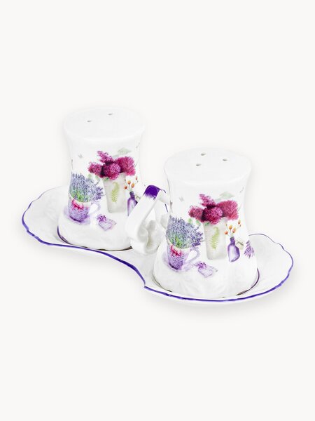 Набор для специй 2 предмета "Лаванда"16,5х9х7,2 см , солонка и перечница - 5,4х5,4х6,7 см 50 мл, на подставке, NEW BONE CHINA