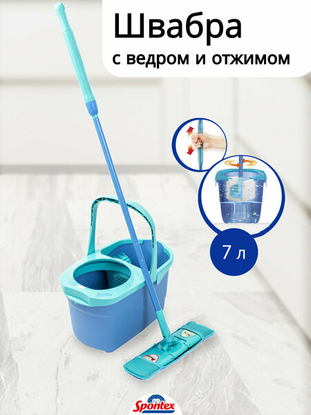 Набор для уборки Spontex "EXPRESS SYSTEM+ XL" - это высококачественный комплект, предназначенный для быстрой и эффективной уборки различных типов напольных покрытий. Особенностью данного набора является улучшенная технология отжима, которая позволяет быстро и без усилий избавиться от лишней влаги. Благодаря этому, процесс уборки становится более комфортным и быстрым. Покрытие швабры изготовлено из высококачественного микроволокна, что обеспечивает эффективное удаление грязи и пыли без использования дополнительных чистящих средств. Все, что вам нужно - это чистая вода. В комплект входят моющая головка для швабры, стержень с системой вращения, насадка и ведро. Размеры ведра составляют 49,5 см в длину, 29,5 см в ширину и 27 см в высоту. Набор выполнен в стильном голубом цвете, что придает ему современный и свежий вид. Материал насадки - микрофибра, а материал швабры - пластик. Выбирая набор для уборки Spontex "EXPRESS SYSTEM+ XL", вы получаете не только качественный и надежный инструмент для уборки, но и удовольствие от процесса уборки, благодаря эффективной и быстрой работе системы.
