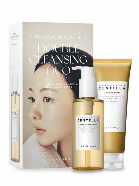 Набор SKIN1004 Madagascar Centella Travel Kit состоит из средств линейки Madagascar Centella для базового ухода за кожей: гидрофильного масла, очищающей пенки, тоника, ампулы и крема.