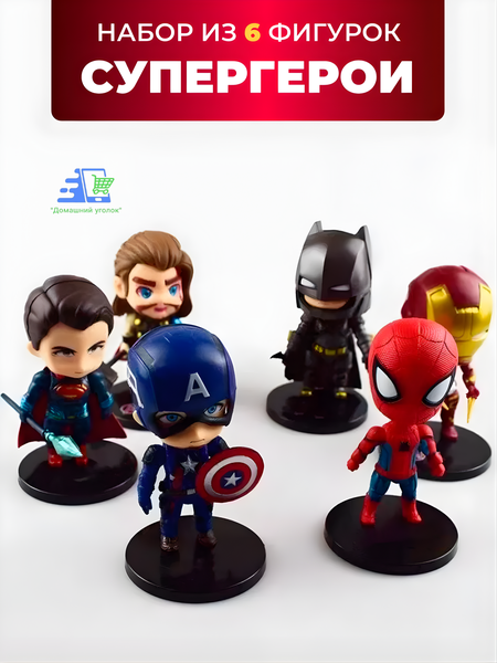 Подарите радость своему ребенку или пополните коллекцию супергероев с набором из 6 детализированных фигурок персонажей вселенных Marvel Comics и DC Comics. В набор входят: Тор (Thor) Капитан Америка (Captain America) Железный Человек (Iron Man) Человек-Паук (Spider-Man) Супермен (Superman) Бэтмен (Batman) Каждая фигурка создана с вниманием к деталям — герои узнаваемы по своему костюму, цветам и позам. Материал — качественный ПВХ (поливинилхлорид), безопасный, не токсичный и устойчивый к влаге, что позволяет играть с ними дома, на улице или даже в ванне. Высота фигурок составляет 10,2–10,5 см, а подставка диаметром 5,8 см обеспечивает устойчивость. Игрушки приятно держать в руках — они не скользят, не имеют неприятного запаха и выдерживают активную игру. ✨ Особенности: Реалистичная детализация персонажей Безопасный материал без запаха Подходит для детей и взрослых коллекционеров Компактный размер — удобно брать с собой в дорогу Отличный подарок для поклонников Marvel и DC Такой набор станет настоящим украшением детской комнаты, коллекционной полки или праздничного подарка на день рождения, Новый год или любой другой повод. Материал: ПВХ Высота: 10,2–10,5 см Диаметр подставки: 5,8 см Количество: 6 фигурок
