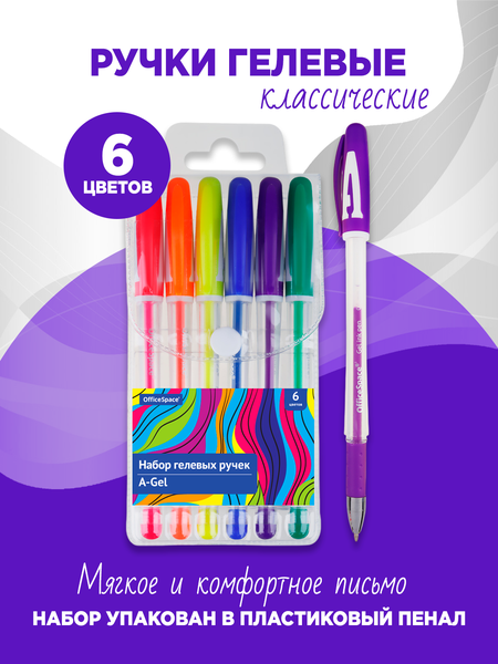 Набор гелевых ручек OfficeSpace "A-Gel" 06цв, 0,5мм, грип, европодвес