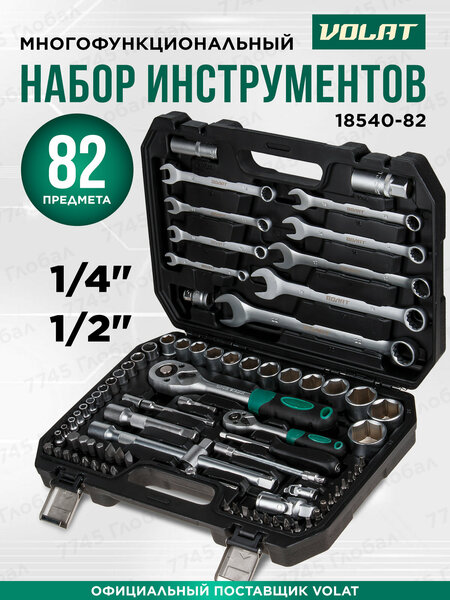 Набор инструментов (набор инструментов ключей комбинированных) это высококачественный набор инструментов (набор головок с трещоткой), который включает в себя 82 предмета. Набор ключей с трещоткой и головками чемодане (набор головок и бит) предназначен для профессионального использования, но также может быть полезен и для домашних мастеров. В набор ключей с головками и трещоткой также представлены комбинированные ключи, трещотки и биты. Это позволяет выполнять широкий спектр работ, от сборки мебели до ремонта автомобиля. Набор ключей и головок для автомобиля упакован в удобный пластиковый кейс, который обеспечивает безопасное хранение и транспортировку всех элементов. Комплектация: