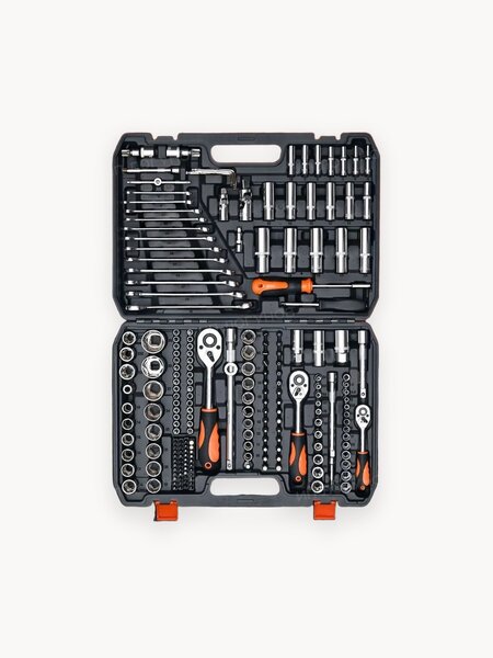 Универсальный набор инструментов на 219 предметов – надежный помощник в доме и гараже. В повседневной жизни часто возникают ситуации, когда необходимо выполнить мелкий ремонт или починить что-то важное без потери времени. Этот комплект поможет справиться с любыми задачами оперативно и качественно. Он продуман таким образом, чтобы максимально охватывать все возможные потребности пользователя: шлицевые, крестовые, шестигранные отвертки, гаечные ключи с трещетками разнообразных размеров от самых маленьких до крупных, сменные биты различной формы и диаметра, дополнительные полезные аксессуары, такие как удлинители и адаптеры; Каждый элемент комплекта изготовлен из высококачественных материалов, которые обеспечивают высокую прочность и долговечность инструмента. Эти характеристики гарантируют устойчивость к механическому воздействию, а также защиту от появления ржавчины и других повреждений во время эксплуатации. Прочный пластиковый контейнер для транспортировки и аккуратного хранения всех компонентов позволяет удобно организовать хранение, не занимая много места. Вы найдете нужный инструмент за считанные секунды благодаря продуманной системе размещения внутри контейнера. Наличие широкого спектра специализированных инструментов делает возможным выполнение практически любого вида ремонта или технического обслуживания, будь то замена лампочки, сборка мебели или устранение мелких неполадок автомобиля, мотоцикла и другой техники. Покупка одного качественного набора избавляет вас от необходимости приобретать отдельные инструменты по отдельности, экономя ваши деньги и пространство в доме. Наш универсальный набор подойдет не только домашним мастерам, но и профессионалам своего дела, которые ценят надежность и эффективность своих рабочих инструментов. Забудьте о поиске подходящего инструмента в самый неподходящий момент и наслаждайтесь комфортом использования надежного помощника в своем деле!