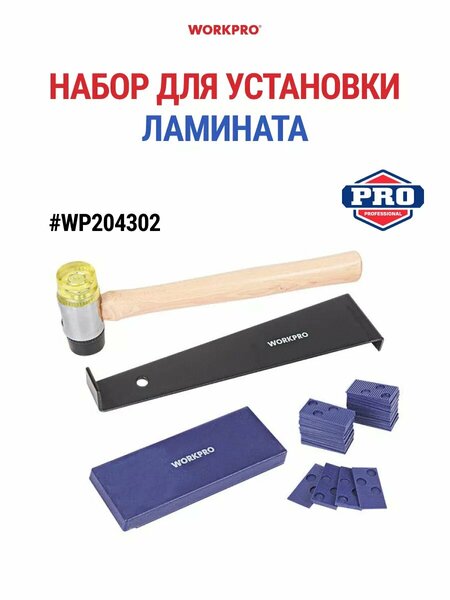 Набор для укладки ламината и паркетной доски WORKPRO WP204302 ускорит процесс сборки и поможет качественно уложить напольное покрытие, такое как ламинат, паркет или замковая ПВХ плитка. Для каждого напольного покрытия производитель рекомендует оставлять технологический зазор между стеной и ламинатом (паркетной доской, замковой ПВХ плитки). При сборке напольного покрытия доски соединяются с помощью торцевых замков. При защёлкивании замка слышен характерный щелчок. В случае необходимости с помощью бруска можно обеспечить окончательную фиксацию замка между панелями напольного покрытия. Для этого необходимо плотно и без перекоса упереть брусок в торцевую часть укладываемой доски и, слегка постукивая киянкой, добиться фиксации замка и минимизировать расстояние (щель) между смежными панелями по всей длине. Брусок необходим для того, чтобы пазы ламината при подбивки не деформировались. При установке последней панели удобно использовать стальную скобу. С помощью неё легко подбить и зафиксировать замок в правильном положении. Так же стальную скобу можно использовать в труднодоступных местах, где необходима подбивка.