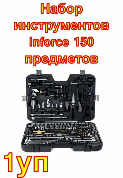 Набор инструментов Inforce 150 предметов Общая информация Профессиональный набор инструментов включает 150 предметов и предназначен для выполнения широкого спектра работ в автосервисах и ремонтных мастерских. Особенности набора