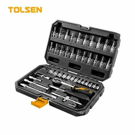 Набор инструментов TOLSEN 1/4" 46 предметов 15138 применяется для монтажа и демонтажа резьбовых и торцевых соединений. Используется в бытовой и профессиональной сферах. Инструмент выполнен из качественной хромованадиевой стали, что обеспечивает высокую прочность, стойкость к износу и долговечность. Эргономичная двухкомпонентная рукоять трещотки комфортно лежит в руках и не скользит во время работы. Набор поставляется в удобном пластиковом кейсе для рационального хранения и транспортировки.