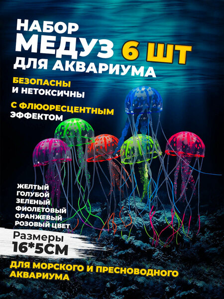 Представлеяем набор искусственных медуз, которые станут отличным и неповторимым декором для вашего аквариума. Эти удивительные создания привнесут новые ощущения и красоту в мир аквариумистики. Набор включает в себя шесть разноцветных медуз, выполненных из высококачественного силикона. Эти декоративные элементы являются идеальным вариантом для создания уникальной атмосферы, в которой рыбы и другие обитатели аквариума будут чувствовать себя комфортно. Декорации для аквариума – это не только эстетика, но и возможность создать новые экосистемы и места для игр рыб, а также спрятаться от посторонних глаз. Вам не придется заботиться о поддержании определенных условий для содержания реальных медуз, так как наши искусственные медузы не требуют особого ухода и не наносят вреда вашим рыбкам. Флуоресцентные медузы из нашего набора придают изюминку вашему аквариуму. С помощью специальных светящихся эффектов, эти медузы создают особенную атмосферу и привлекают внимание к своим ярким краскам. Ночью ваш аквариум будет превращаться в магическое место с волшебным свечением, которое удивит не только вас, но и всех, кто решит посетить ваш дом. Искусственные медузы из нашего набора являются безопасными для аквариумных обитателей и не влияют на химический баланс воды. Они прочны и долговечны, что позволит им сохранить свою привлекательность на протяжении многих лет. Мы предлагаем вам уникальную возможность преобразить ваш аквариум с помощью этих прекрасных декораций. Набор искусственных медуз в аквариум станет прекрасным украшением для вашего дома или офиса, а также подарком для любителей аквариумистики. Не упустите шанс сделать свой аквариум по-настоящему привлекательным и прекрасным местом для вашей рыбки. Закажите набор искусственных медуз в аквариум прямо сейчас и создайте неповторимое пространство для ваших обитателей.