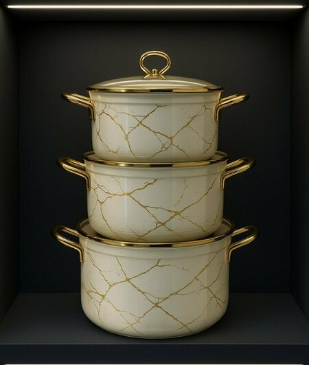 Набор кастрюль из эмалированной стали: качество и функциональность Набор кастрюль из эмалированной стали станет незаменимым помощником на вашей кухне. Изготовленные из высококачественного материала, эти кастрюли обеспечивают долговечность и надежность в использовании. Набор кастрюль поставляется в стильной и элегантной подарочной упаковке, которая делает его отличным вариантом для подарка на любой праздник или событие. Выбирая набор кастрюль из эмалированной стали, вы получаете не только качественный и функциональный товар, но и стильный элемент декора для вашей кухни.