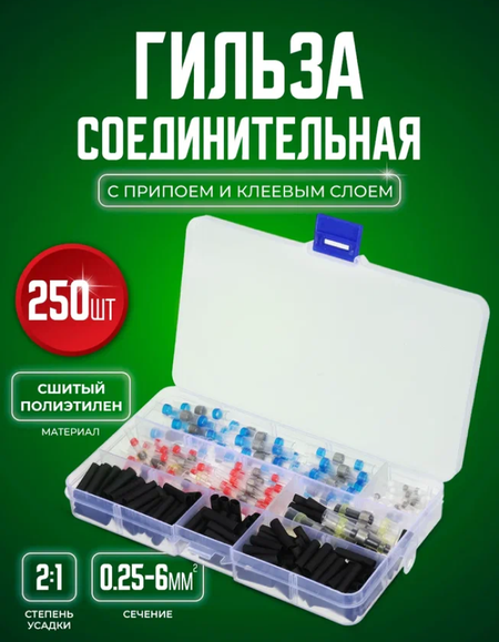 Набор термоусаживаемых соединителей STAREX состоит из 250 термотрубок с припоем и клеевым слоем и предназначен для соединения медных многопроволочных проводов внахлест или встык методом термообработки. В центре соединителя располагается гильза из низкотемпературного припоя олово-свинцовой группы. С обеих сторон на внутренней поверхности термоусадки располагаются клеевые полосы, обеспечивающие герметичность соединения после усадки. Независимо от того, работаете ли вы на своей лодке, транспортном средстве, домашнем или промышленном объекте, наши термоусадочные паяльно-уплотнительные соединители обеспечат плотную пайку, повышенный ток и всепогодные соединения везде. Набор термоусадок для проводов поставляется в удобном пластиковом кейсе. Идеально подходит как для электриков-профессионалов, так и для домашних мастеров. Кроме того, наши термоусадочные кембрики (ТУТнт) можно использовать в качестве соединительных трубок, переходника, набора для пайки. Термоусадочные стыковые соединители повышают прочность и обеспечивают уплотнение снятие напряжения проверку кабеля и изоляцию. Характеристики: 1. Коэффициент усадки 2:1 2. Диаметр 0.25-6мм2 3. Огнестойкость 4. Температура усадки 160 градусов 5. Пять различных видов и цветов 6. Сфера применения – электромонтаж, электропроводка и проводка электрическая. Комплектация: -черный (не водонепроницаемый) - 150 шт, -красный - 35 шт, -синий - 30 шт, -белый - 25 шт, -жёлтый - 10 шт, -Пластиковый контейнер для хранения. В нашем магазине вы найдете множество инструментов для стройки и ремонта в квартире или на даче. Порадуйте своих близких нужным подарком на день рождения, 23 февраля или другой праздник.
