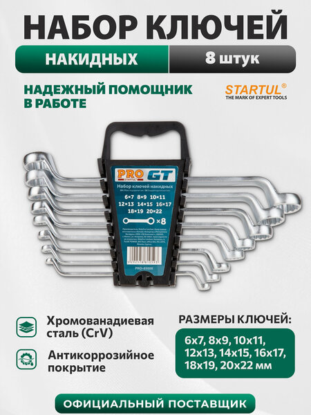 Набор ключей накидных 6-22 мм 8 штук PRO STARTUL GT PRO-83008