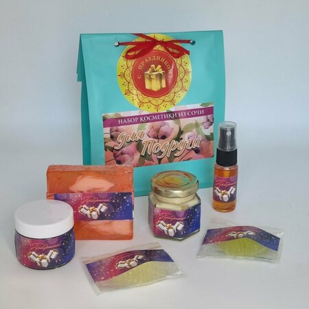 Подарочный набор сочинской косметики в именном оформлении для поздравления любимой подруги с Днем рождения или любым другим праздником.