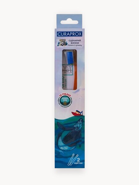 Набор "Серый кит" — это уникальное сочетание двух специализированных зубных щеток CURAPROX, предназначенных для комплексного и бережного ухода за полостью рта людей с ортодонтическими конструкциями, а также для всех, кто ценит тщательную гигиену. В состав набора входит ортодонтическая щетка CS 5460 Ortho Ultra Soft и монопучковая щетка CS 1009 Single & Sulcular. CS 5460 Ortho Ultra Soft оснащена специальным углублением на головке, что позволяет ей максимально эффективно и деликатно очищать брекеты, замки и проволоки, а также прилегающие к ним участки зубов и десен. 5460 ультратонких щетинок CUREN® диаметром 0,10 мм обеспечивают мягкое, но тщательное удаление налета, предотвращая развитие кариеса и воспаления десен даже при длительном ношении ортодонтических систем. Восьмигранная ручка способствует правильному положению щетки под углом 45°, что важно для качественной чистки. Монопучковая щетка CS 1009 Single & Sulcular, благодаря компактной круглой головке и 620 щетинкам CUREN® длиной 9 мм, идеально подходит для точечной чистки труднодоступных мест: вокруг брекетов, вдоль линии десны, около имплантатов и в межзубных промежутках. Она незаменима для индивидуального ухода за каждым зубом по технике "соло", позволяя тщательно прорабатывать участки, которые невозможно очистить обычной щеткой. В результате, использование обеих щеток в тандеме обеспечивает максимальную защиту от налета, кариеса и воспалительных заболеваний, а также поддерживает здоровье десен на высоком уровне. Приобретая набор "Серый кит", Вы не только заботитесь о своем здоровье, но и вносите вклад в благотворительный проект по защите серых китов: часть средств от продажи перечисляется в фонд "Возрождение природы", который занимается сохранением редких видов животных и их среды обитания. Таким образом, ежедневный уход за собой становится частью большой истории заботы о природе и поддержке уникальных представителей фауны России.