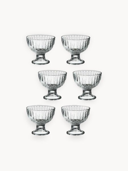 Креманки для мороженого из рельефного стекла набор 6 шт. Розетки изготовлены из натрий-кальций-силикатного стекла, свинец в технологии не применяется. Высота креманки - 10 см, диаметр верхней кромки - 11 см, вместимость - 330 мл. Набор ваз на ножке, идеально подходит для подачи десертов и салатов, закусок и мороженого, соусов и прочих блюд. Универсальный классический дизайн пиалы подойдет в любой интерьер на каждый день и для праздничной сервировки стола. Стеклянные мороженицы подходят для регулярного использования, их можно мыть в ПММ. Набор посуды - это отличный выбор для полезного и практичного подарка маме и жене, подруге и девушке, сестре и бабушке, вашим близким людям и родственникам, коллегам и друзьям на любой праздник: новый год и Рождество, день рождения и 8 марта, 14 февраля и юбилей, годовщина и новоселье.