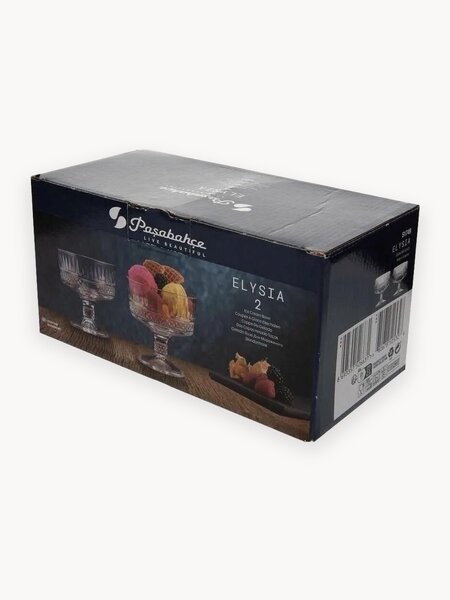 Pasabahce Набор креманок Elysia, 2 шт. по 250 мл Креманка Pasabahce — стеклянная креманка, используемая в качестве емкости для мороженного. Благодаря специальной технологии производства посуда из закаленного стекла приобретает особую прочность и долговечность. Стеклянная посуда абсолютно безопасна для здоровья, так как она не выделяет вредных веществ при нагревании. Также посуда не впитывает посторонних запахов и легко моется при помощи обычных чистящих средств. Элегантный и утонченный внешний вид позволит стеклянной посуде стать изысканным украшением любого стола, что делает ее незаменимой для заведений общественного питания: ресторанов, баров, кафе. Характеристики: Объем: 250 мл Высота: 98 мм Диаметр горловины: 100 мм Диаметр основания: 70 мм Ширина: 100 мм