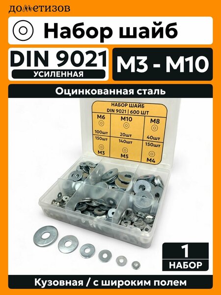 В наборе: Шайбы: М 3 - 150 шт М 4 - 150 шт М 5 - 140 шт М 6 - 100 шт М 8 - 40 шт М 10 - 20 шт Данный набор - отличный подарок для вашего мужчины на 23-тье февраля, ко Дню Защитника Отечества! Набор крепежа шайба DIN9021; шайбы DIN9021 набор; шайбы увеличенные набор; набор шайб 600 шт; шайбы оцинкованные набор; крепежный набор; метизы набор; шайбы для кровли; шайбы для фасадов; шайбы увеличенные оцинкованные; шайбы для мягких материалов; набор метизов; шайбы для монтажа; шайбы для строительства; шайбы для дерева; шайбы для ДСП; шайбы для профнастила; шайбы промышленные; шайбы универсальные; комплект шайб; шайбы DIN 9021; купить набор шайб; шайбы цена набор; шайбы для оборудования; шайбы для сервиса; шайбы для ремонта; шайбы для производства; шайбы оцинкованные; шайбы для болтов; шайбы для гаек; набор крепежных изделий; шайбы для мастерской набор; шайбы для цеха; шайбы для гаража; шайбы увеличенной площади; шайбы для продавливания; шайбы для кровельных работ; шайбы для фасадных систем; шайбы для террас; шайбы для сельского хозяйства; шайбы для теплиц; шайбы для мебели; шайбы для ДВП; шайбы для МДФ; шайбы для каркасов; шайбы для балок; шайбы для строительных работ; шайбы для монтажных работ Набор крепежа "Шайба DIN9021" 600 ед. оцинкованная сталь | Набор увеличенных шайб | Шайбы увеличенные стандартные | Универсальный крепежный набор | Комплект метизов для мастерской Набор крепежа "Шайба DIN9021" 600 ед. – Надежная защита ваших соединений! Профессиональный набор увеличенных шайб для особо ответственных соединений! Комплект из 600 оцинкованных шайб стандарта DIN9021 обеспечивает максимальную площадь опоры и защиту от продавливания материалов. Идеальное решение для монтажа в мягкие материалы и работы с большими нагрузками. ✨ Ключевые преимущества и уникальность: ✅ Увеличенная площадь опоры: Защищает мягкие материалы от продавливания ✅ Оцинкованная сталь: Надежная защита от коррозии и ржавчины ✅ Полный комплект 600 шт: Оптимальный запас для различных задач ✅ Стандарт DIN9021: Гарантия качества и совместимости ✅ Размерный ряд М4-М12: Покрытие большинства потребностей в крепеже ✅ Удобная упаковка: Компактное хранение и быстрый доступ Область применения: