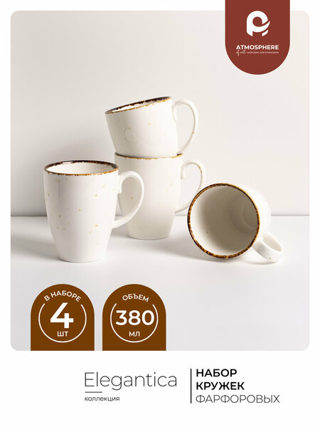 Набор фарфоровых кружек Atmosphere of Art «Elegantica», 380мл, 4шт, белый-коричневый