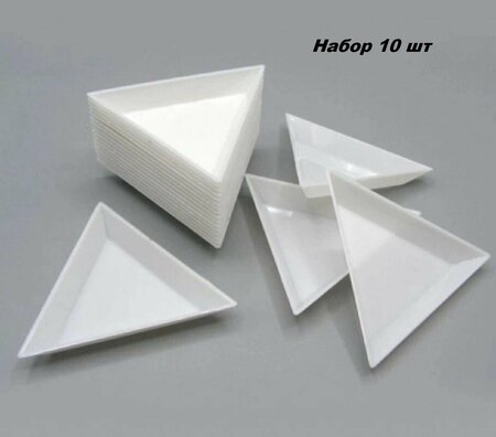Набор треугольных лотков для бисера является незаменимым помощником в работе с бусинами, стразами, алмазной мозаикой и прочими мелкими деталями. Он предназначен для хранения мелких предметов: фурнитуры для изготовления бижутерии, камней и бусин, пайеток и многого другого. Они помогают сохранять порядок в работе, стразы не рассыпаются по столу, а остатки страз потом легко ссыпать обратно в пакет или контейнер через узкий носик. Лотки для бусин и бисера - незаменимый инструмент для всех, кто занимается рукоделием, творчеством и маникюром. Его треугольная форма позволяют удобно и компактно хранить бисер, а благодаря белому цвету не искажают цвета используемых материалов. Аксессуар для хранения страз изготовлен из качественного пластика, что делает его прочным и долговечным. Благодаря треугольной форме лотка для бисера пластик содержимое удобно высыпать на стол или другую рабочую поверхность. Несколько емкостей для бусин и бисера можно компактно расставить на столе, чтобы материалы были под рукой во время работы. Он идеально подходит для сборки и хранения бисера, а также для создания уникальных украшений и подарков своими руками. В треугольник контейнер для страз удобно насыпать мелкие предметы для наглядности и удобства в работе или при выкладывании рисунка из страз. Контейнер для декора применяется и как аксессуар для маникюра и отлично справляется с задачей порядка на вашем рабочем месте во время работы.