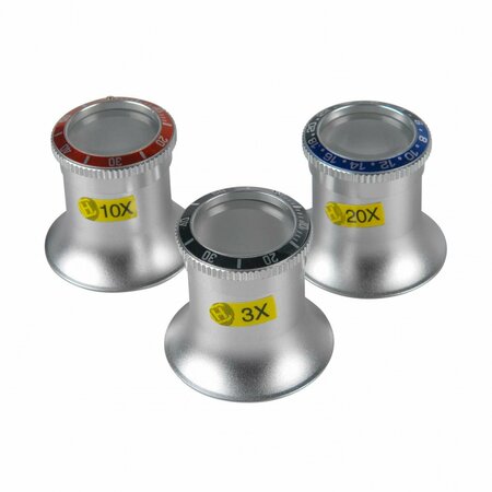 Набор луп часовых Veber MG15-3 с увеличением 3х, 10х и 20х подходит для работы с часовыми механизмами, электроникой, ювелирными изделиями, книгами и картами. Линзы выполнены из оптического поликарбоната, более легкого по сравнению со стеклом, но сохраняющего оптические качества изделия. Линзы асферические – они обеспечивают четкое изображение и в центре, и по краям. Корпус из пластика имеет отверстие для проникновения воздуха – это позволяет избежать запотевания и образования конденсата. Форма лупы позволяет комфортно держать ее в руках, зажимать в глазнице или использовать универсальные держатели для луп. Во время работы лупу необходимо поднести как можно ближе к глазу и постепенно приближать или отдалять объект наблюдений, пока он не окажется в фокусе. Чем больше увеличение, тем ближе к линзе должен располагаться объект. Модель Veber MG15-3 Кратность 3х/10х/20x Диаметр линзы 22 мм Материал линзы оптический поликарбонат Материал корпуса алюминий Размер лупы 33х38х38 мм Вес лупы 14 г Размер упаковки 40х40х120 мм Вес с упаковкой 75 г