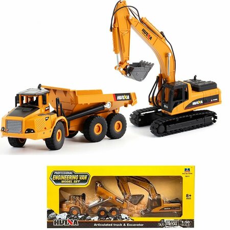 Коллекционная модель 1:50 Экскаватор металлический + Самосвал HuiNa 1611