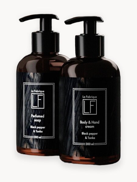 Почувствуйте истинную элегантность и стиль с набором «Black Pepper & Tonka» — утончённым дуэтом для ухода за кожей рук. Композиция аромата сочетает пряные ноты чёрного перца и бергамота, мягкое тепло бобов тонка и гвоздики, а также благородную глубину сандала и ветивера, создавая харизматичный и стойкий шлейф. Парфюмированное жидкое мыло для рук бережно очищает кожу, не пересушивая её, и оставляет ощущение свежести и ухода. Крем для рук обеспечивает интенсивное увлажнение и защиту. Лёгкая текстура быстро впитывается, не оставляя жирных следов, делает кожу нежной и ухоженной. «Черный перец & Бобы тонка» — это воплощение силы и утончённости. Роскошный аромат, комфорт и уход, объединённые в одном наборе для идеальных рук. Этот набор станет отличным вариантом подарка на Новый год, День Рождения, 8 марта, 23 февраля или любой другой праздник.