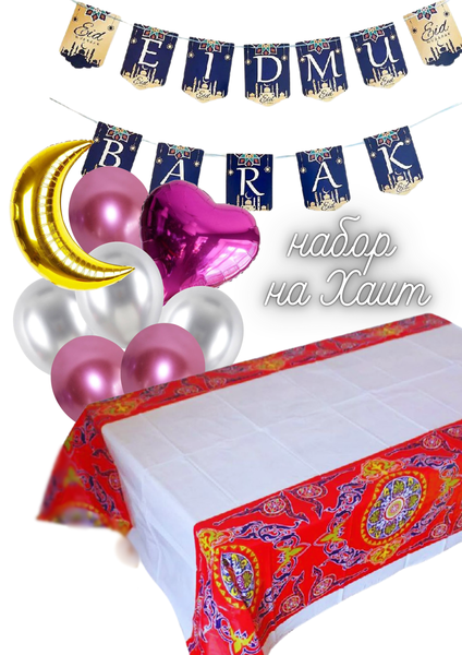 Набор Eid muborak из 10 штук входить 1 Фольгированный круг 45см. 1 Фольгированная луна 60 см. 3 серебряных шара 12 дюймав-30 см. 3 бордовых шара 12 дюймов-30 см. 1 клеенчатая скатерть в стиле eid mubarak 180*100см, 1 растяжки eid mubarak (размер регулируется). Уважаемые мусульмане, очень скоро священный праздник Ramadan, наша компания предлагает интересный набор, где уже собрано все необходимое для набольшего декора квартиры на хаит. Скатерть тонкая, больше подходит как разовое использование, растяжка плотная картонная декор на eid mubarak приятный и уютный с нашими необычными товарами. Праздник ramadan самый священный праздник и требует особого отношения. Мы предлагаем не только вкусно приготовить, но и создать красивый декор своими руками. С нашими товарами можно создать уютную атмосферу интерьера, декорировать красиво стол на хаит, с нашими шарами на хаит или Рамадан (рамазан) ваш труд не останется не замеченным. С праздником Рамазан друзья.