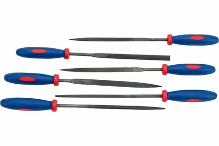Набор надфилей WORKPRO 6 шт. WP251018 подходит для шлифования и опиливания поверхности различных заготовок. Инструменты выполнены из прочной термически обработанной стали. Материал отличается высокой прочностью и долговечностью. Эргономичные рукоятки обеспечивают комфортную эксплуатацию. Толщина надфилей: Плоский острый - от начала 1,3 мм до 1,4 мм к ручке Плоский - 1,4 мм Треугольный - высота треугольника от 1 мм до 3,3 в середине и 3 мм ближе к ручке Круглый - от 1 мм до 2,8мм Полукруглый - от 1мм до 1,8 мм Квадратный - от 1,4 до 2,7 мм